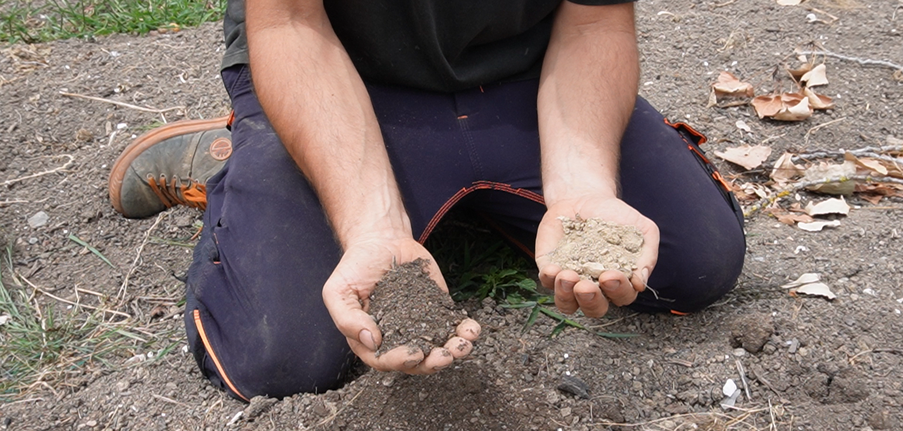 A la derecha, el suelo original (en profundidad). A la izquierda, el suelo actual (en superficie).